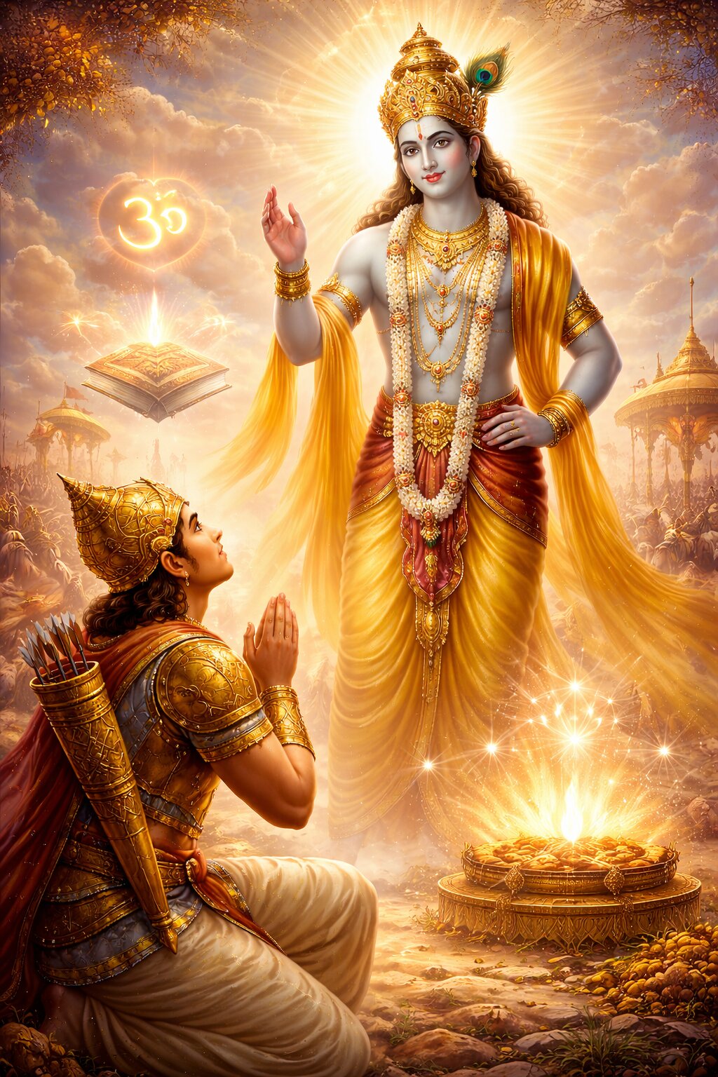 Lord Krishna explains that this sacred knowledge is timeless. He taught it to the Sun God long ago and now reveals it again to Arjuna. Truth is eternal, even when forgotten by the world.