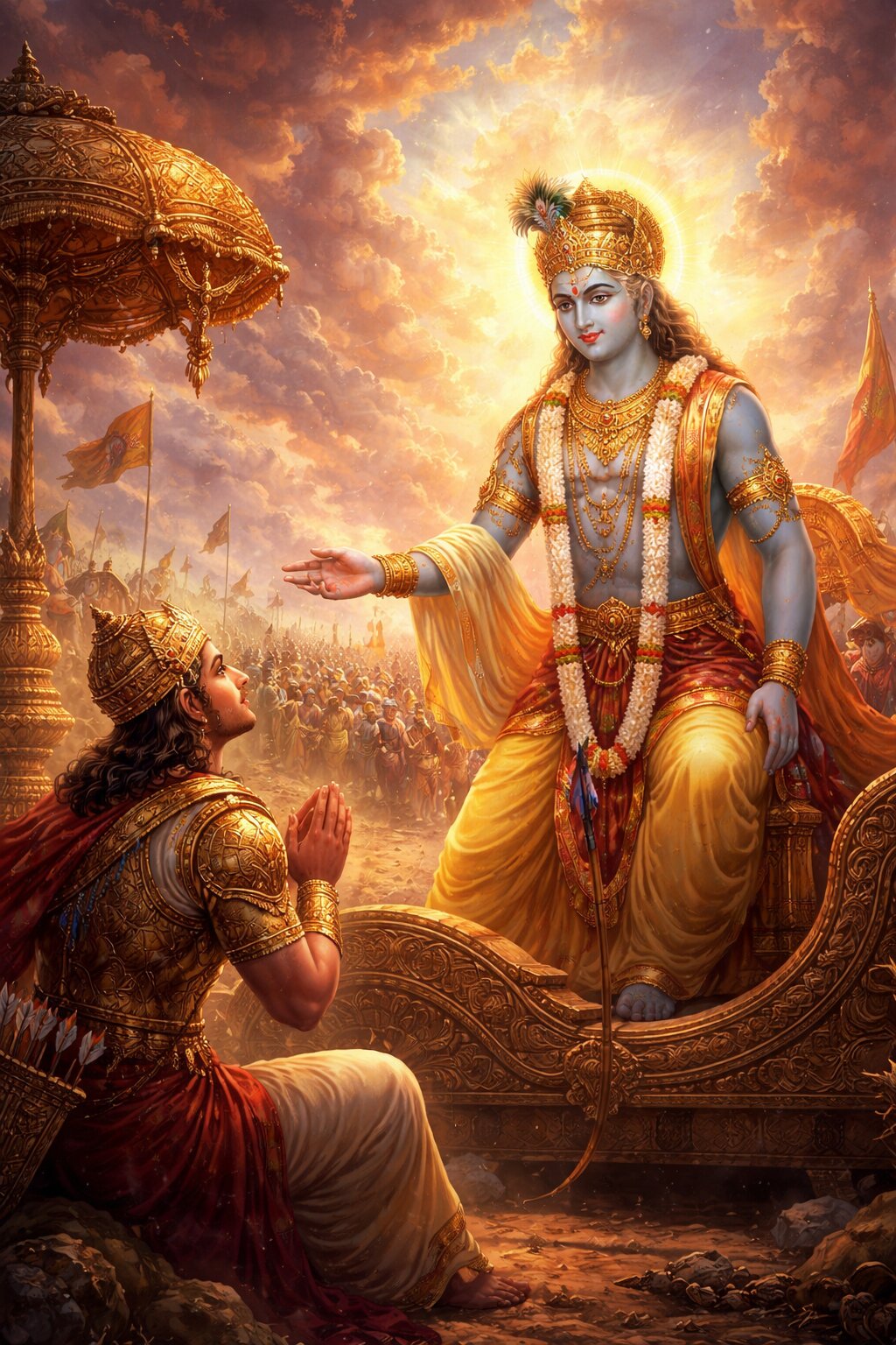– Remember God at every moment. – The final thought determines your next destination. – Devotion is the highest path. – The soul is eternal. – Liberation is possible through constant meditation and surrender.